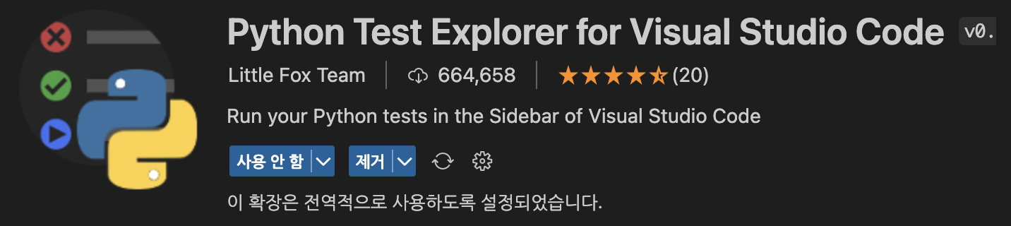 - vscode마켓플레이스에 가서 'python test explorer for Visual Studio Code'를 다운로드 한다